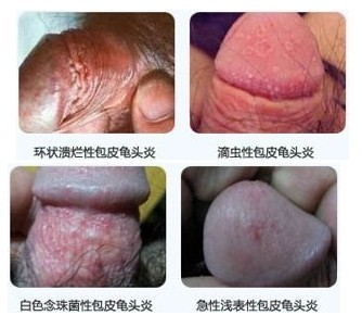 初起时局部潮红,阴茎的皮肤发红、肿胀,自觉龟头有灼热和瘙痒的感觉。翻开包皮,可见包皮内面及龟头充血糜烂,有渗液,甚至于出血。继发感染后可见小溃疡,有恶臭的乳白色脓性分泌物。如与内裤磨擦即感疼痛,患者常常活动不便。可伴有腹股沟淋巴结的肿大和压痛。